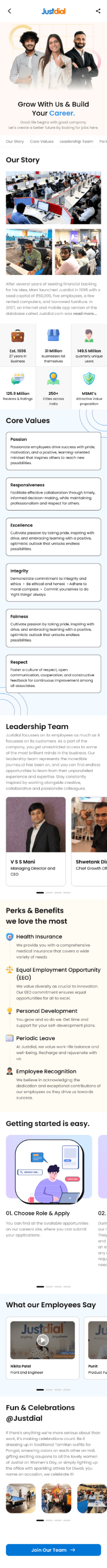 Revamping Justdial Ltd's careers page involves creating an intuitive, visually engaging platform to attract top talent, showcasing the company's culture and values to reinforce its appeal as an employer of choice.