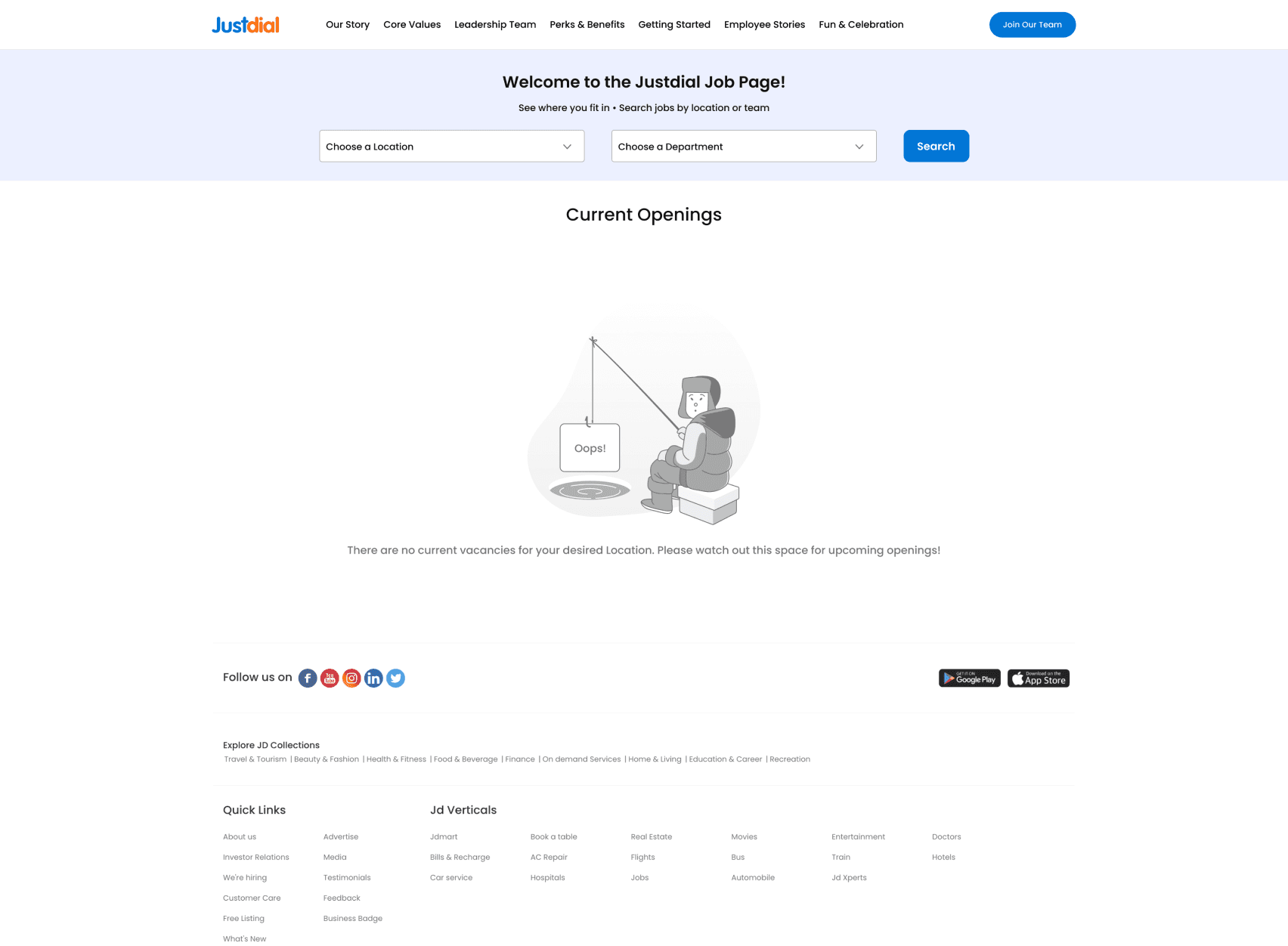 When user searches for a job listing and there are no results